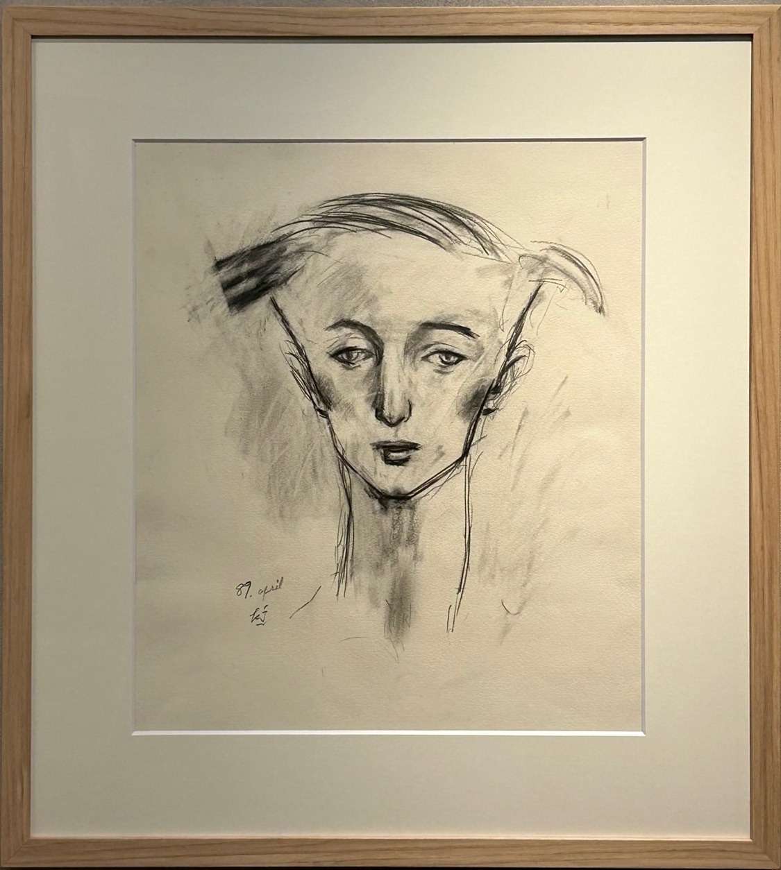 技法:デッサン(紙に鉛筆、コンテ(黒、オフホワイト))