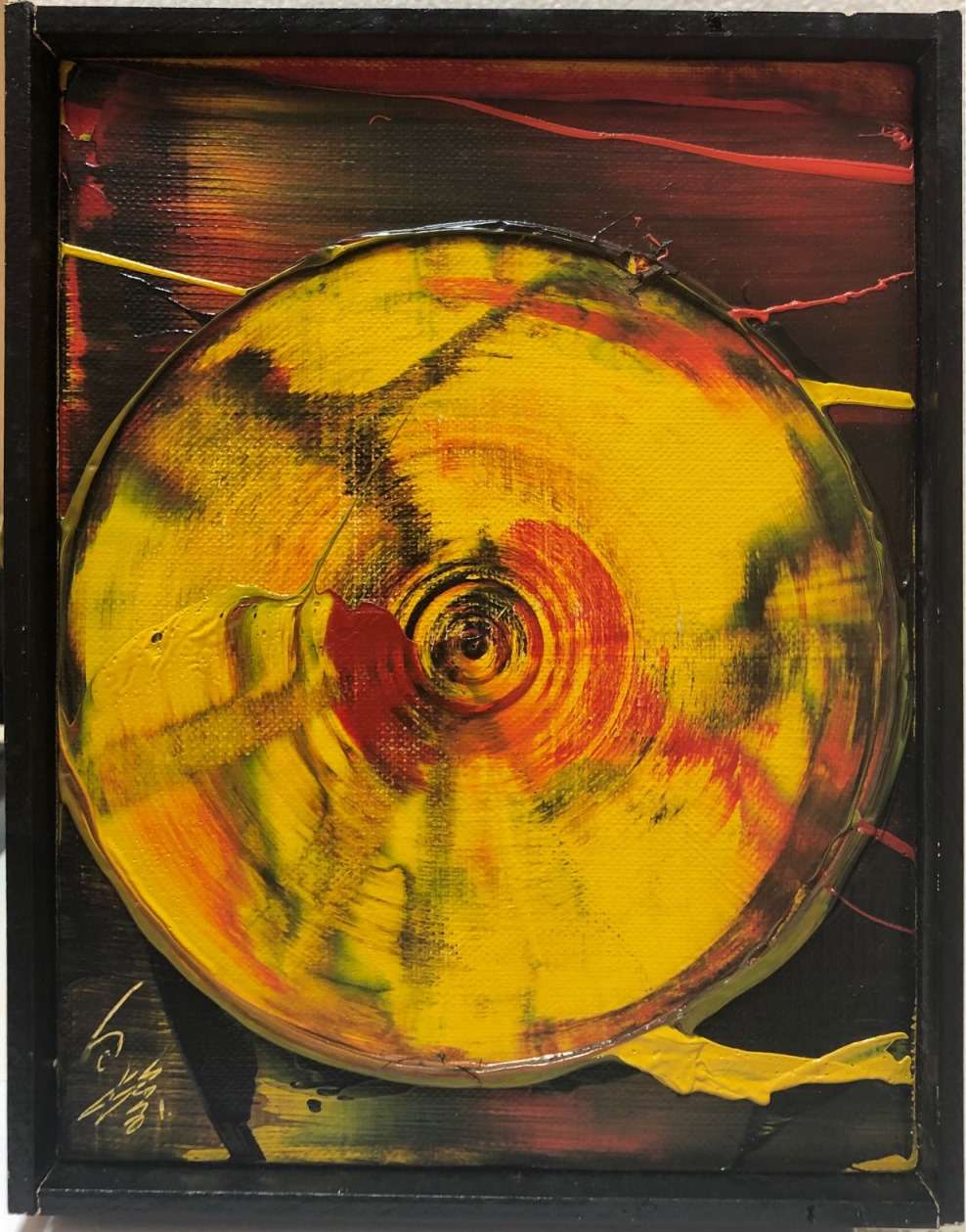 キャンヴァスに油彩画。小振りですが白髪らしい作品です。裏面に漢字サイン。
