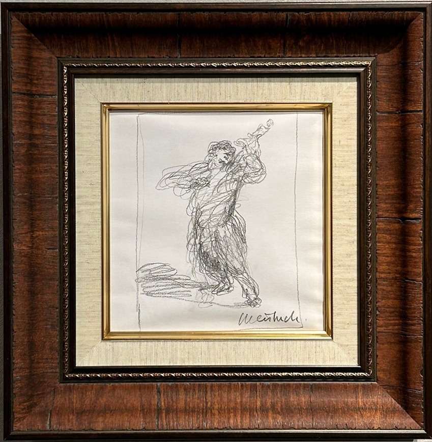 演奏家や舞台演劇、馬などを躍動的に描き続けて2014年に87歳で生涯を閉じたワイズバッシュの小振りで飾りやすいデッサン作品。動きの描写に「らしさ」が表れている作品です。